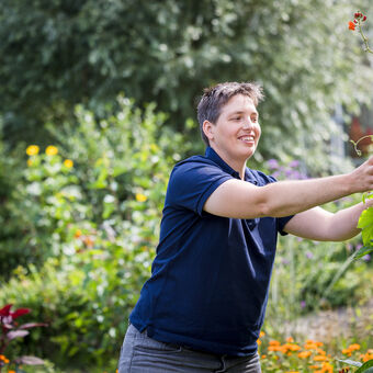 Ontspan in de theetuin en geniet van een kopje thee of koffie. Achter de kapschuur vind je de bijentuin met prachtige bijenplanten zoals Echinacea en Silphium, die oorspronkelijk uit de Amerikaanse prairie komen. Of maak een wandeling door de belevingstuin bij Passiflora, aangepast voor rolstoelen zodat iedereen kan genieten van de bloemen en planten. Een deel is zelfs een pluktuin!